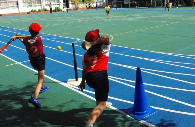 - 「打つ」「捕る」「投げる」の役割をそれぞれ分担することで待機時間が少なく、運動量が増えます。