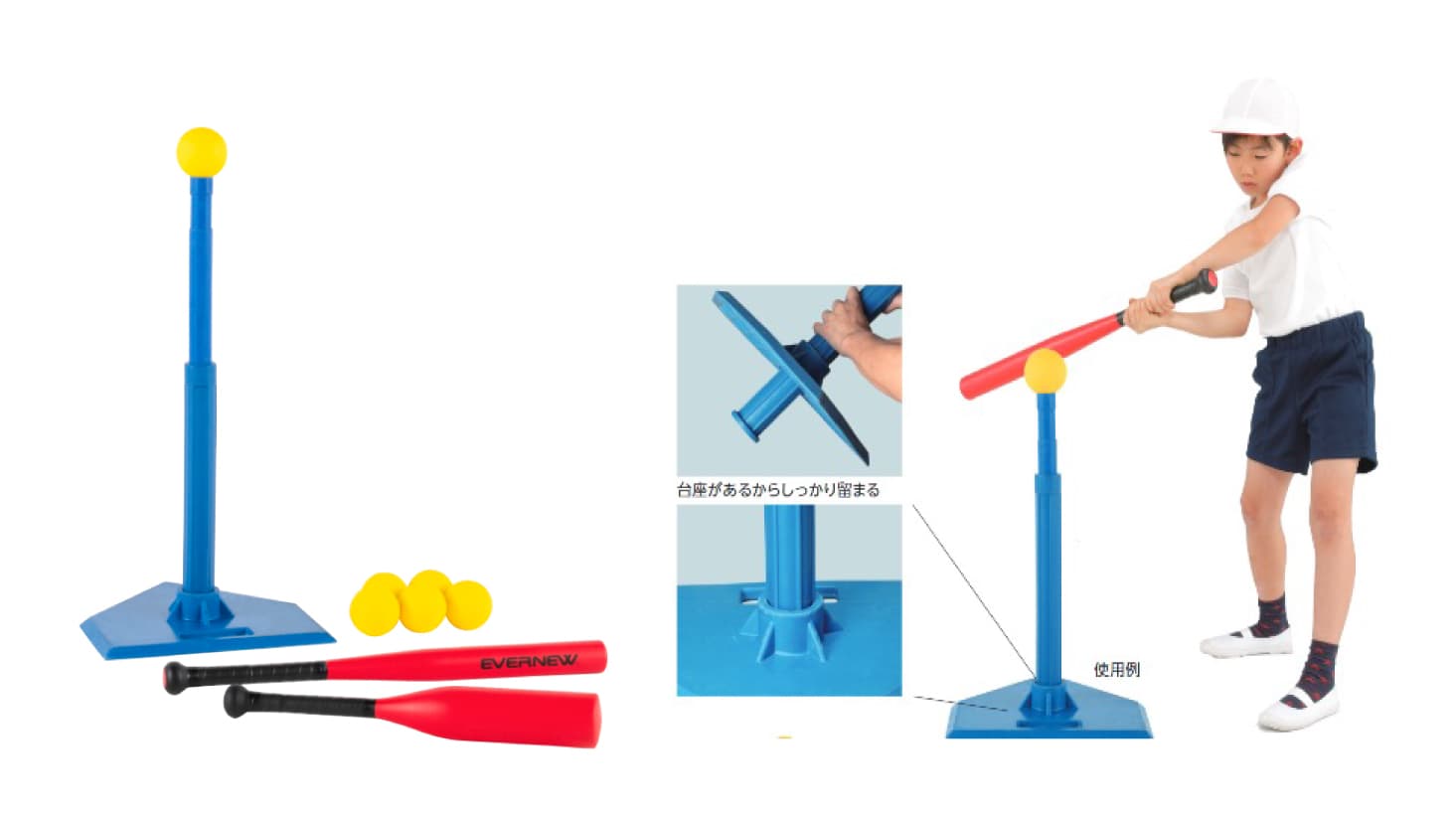 <セット内容>ボール(6個)、バット(2本)、ティーボールスタンド(1台)