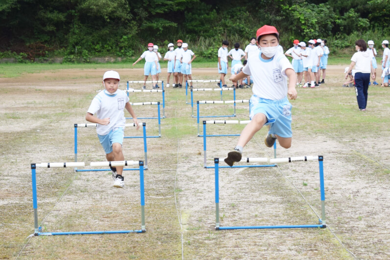 段階的に普通のハードルに移行させています(新潟県田上小学校さま)