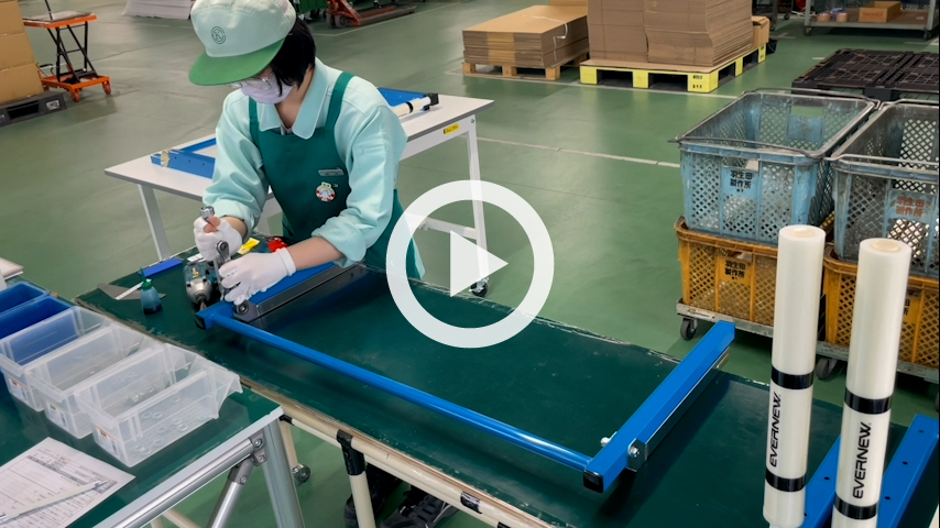 エバニューのハードルは、溶接ロボットと熟練の工員の手により1台1台丁寧に製造されています。