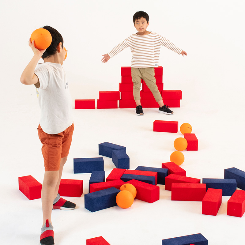 - 赤30個・青30個のブロックと直径12cmのボール10個のセット