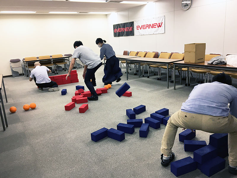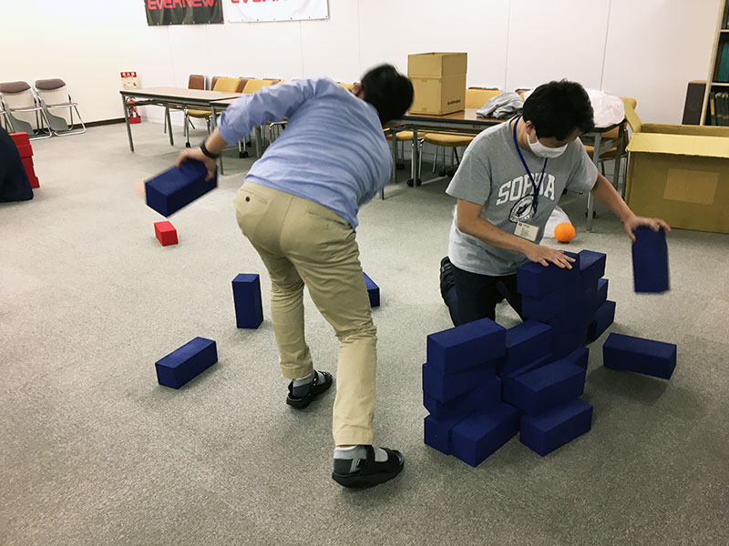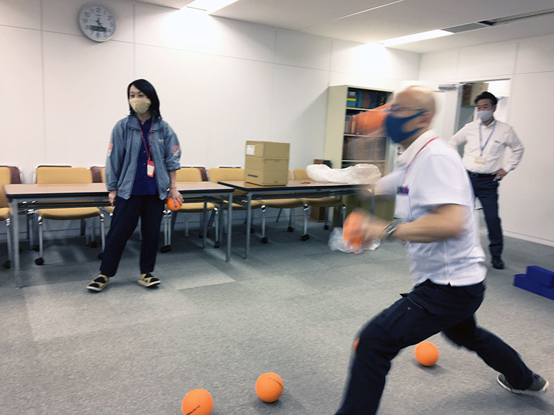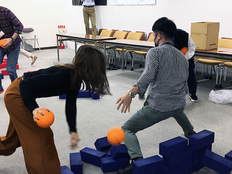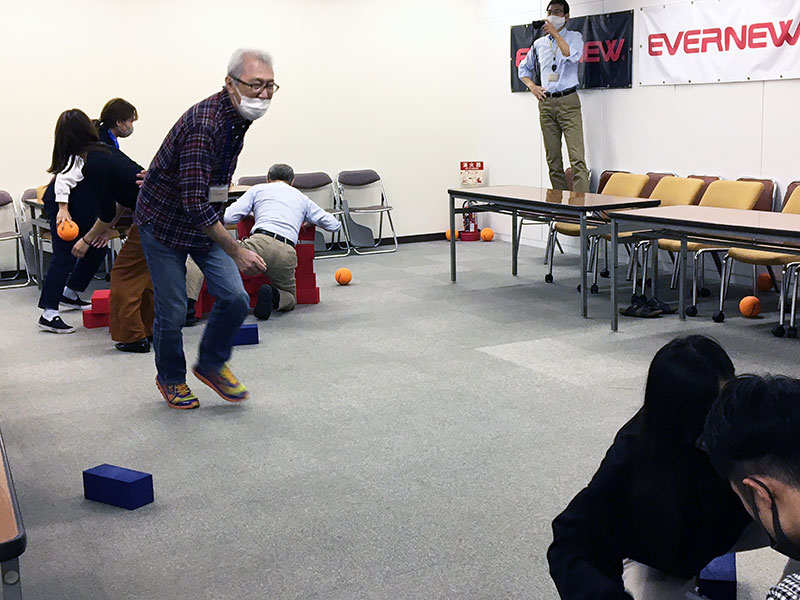 - 大先輩チームと対戦、でもそんなことは関係なし!大先輩が一生懸命積上げた壁にボールを思いっきり投げ、崩せたときの快感はたまりませんでした(笑)