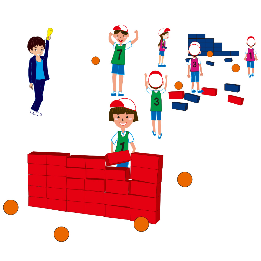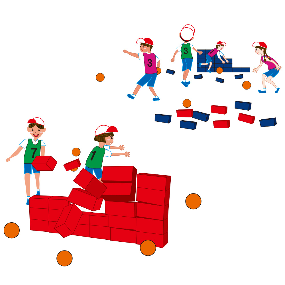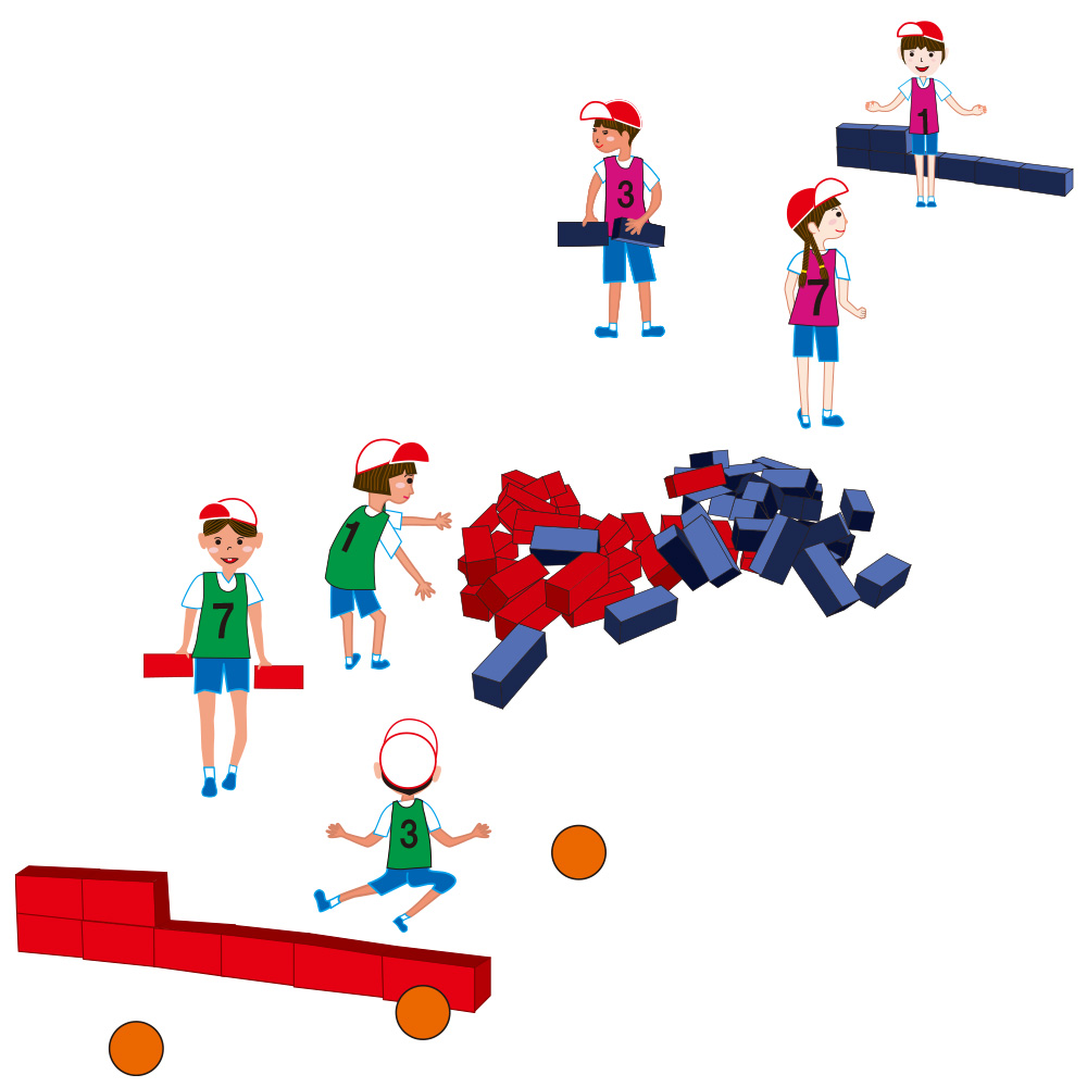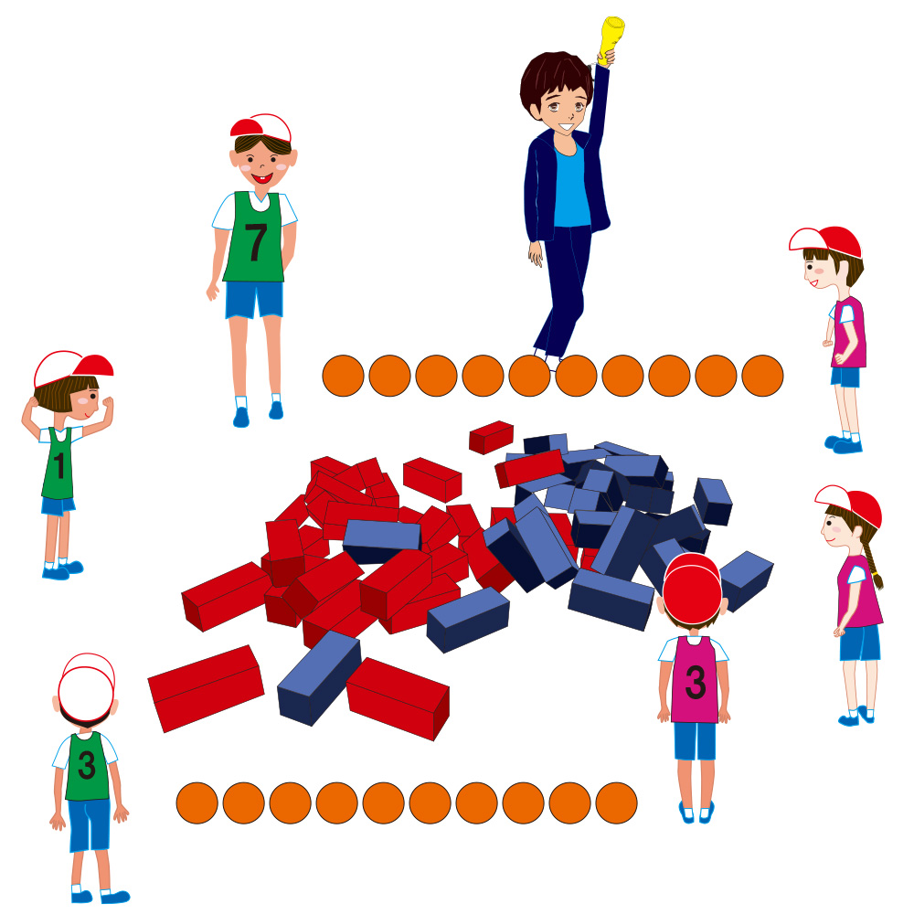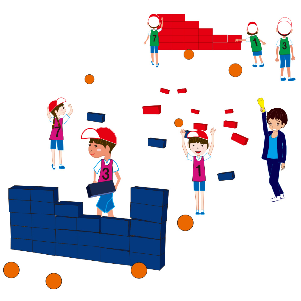 合図とともに中央のブロックを自陣に運びブロックを積みかさねます。