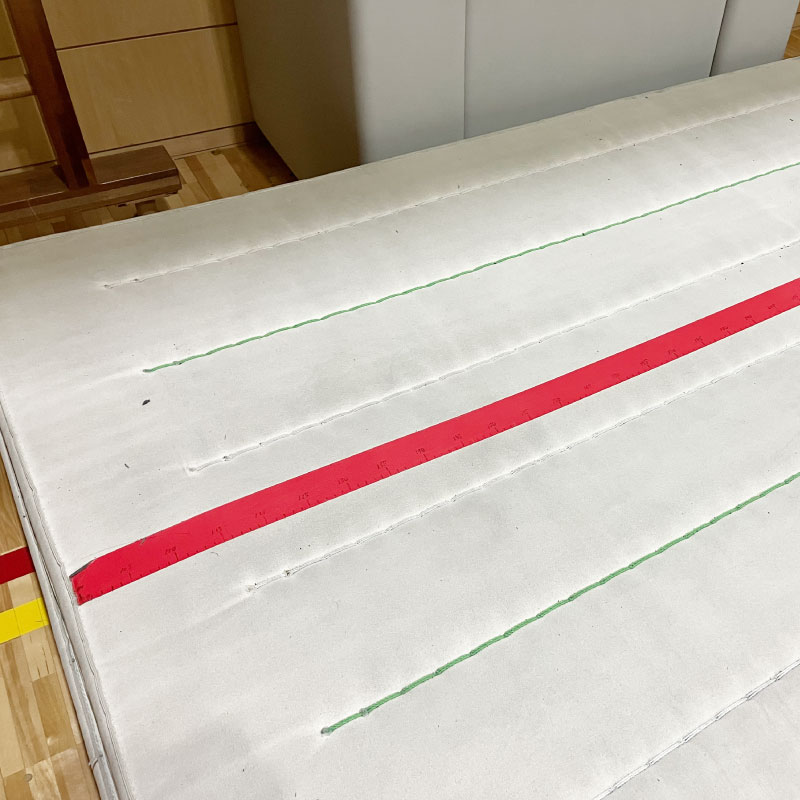 立ち幅跳びマットへ - 破れて使わないまま放置されていた体操マットが立ち幅跳びに適した多機能マットへ変身します。