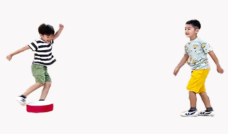 【遊び方】 ソフトスライドサッカーを蹴り、止った位置で得点を競う。遠くに蹴りすぎないコントロール力が勝利のカギ!