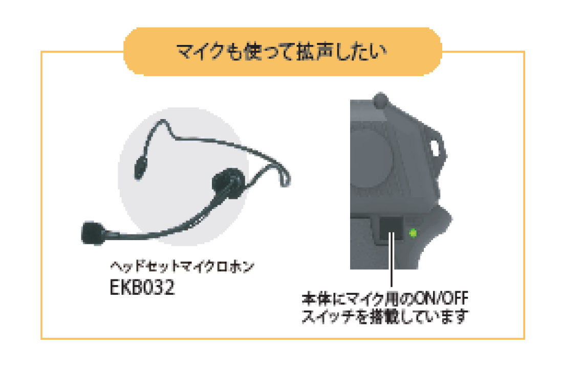 先端にスピーカー搭載 マイク接続で音声出力が可能 |