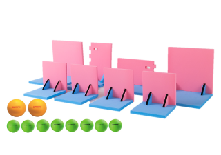 2色のパネルが直角に接続されており、床に置いて内側にボールを当てる事でパネルを反転させる事ができるよ。